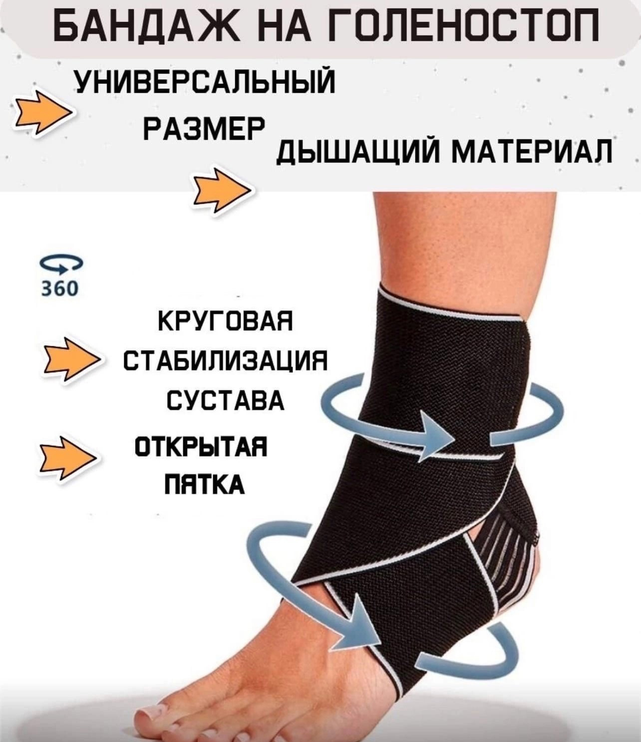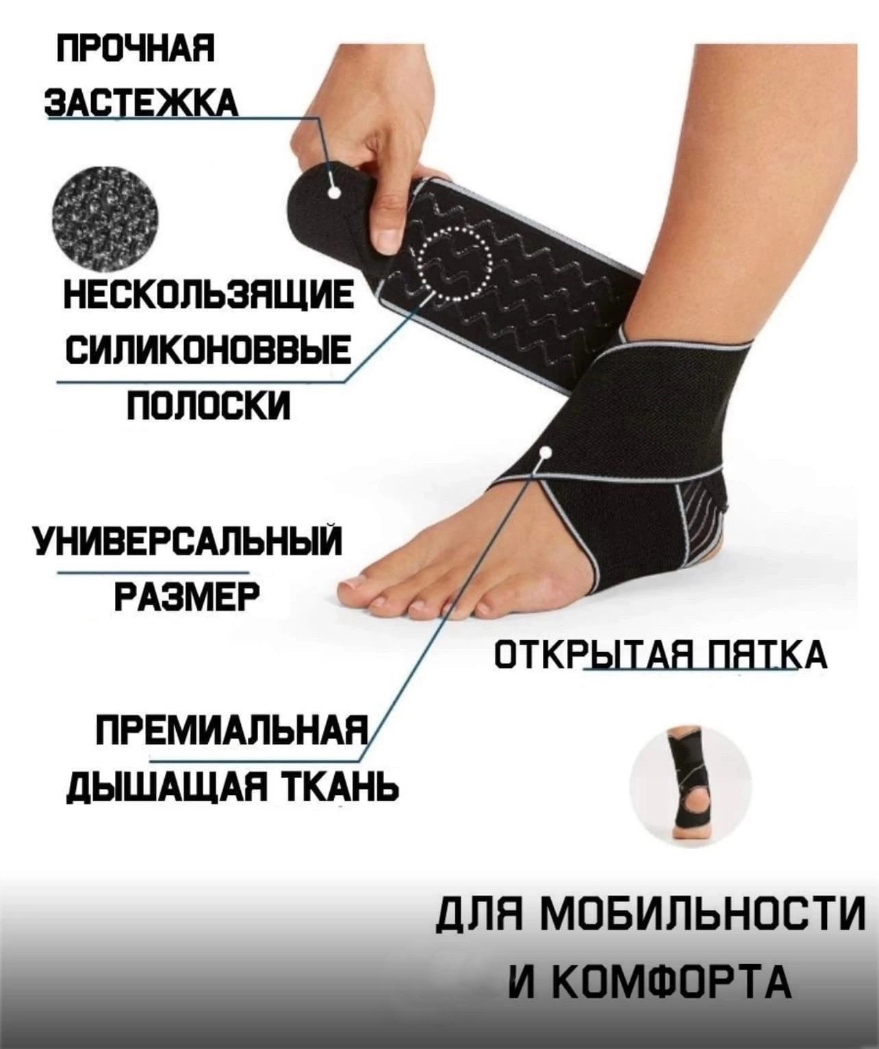 Бандаж голеностопный на любой размер ноги Вам оптимизировать нагрузку на мышечные ткани, сухожилия и сосуды Ваших ног. Волокна сохраняют мышцы и суставы в тепле и гибкости, успокаивая мышечные боли. Фиксатор голеностопа также будут приятным открытием для леди, вынужденных ходить на высоких каблуках. Достаточно надеть их вечером, и к утру ноги будут отдохнувшими. Отрез на голеностопный сустав выполнен из ткани с силиконовым противоскользящими вставками. Надежно и бережно поддерживают лодыжки. Помогут Вам улучшить спортивные результаты. Увеличивают скорость восстановления мышц после тренировок. Улучшают циркуляцию крови.