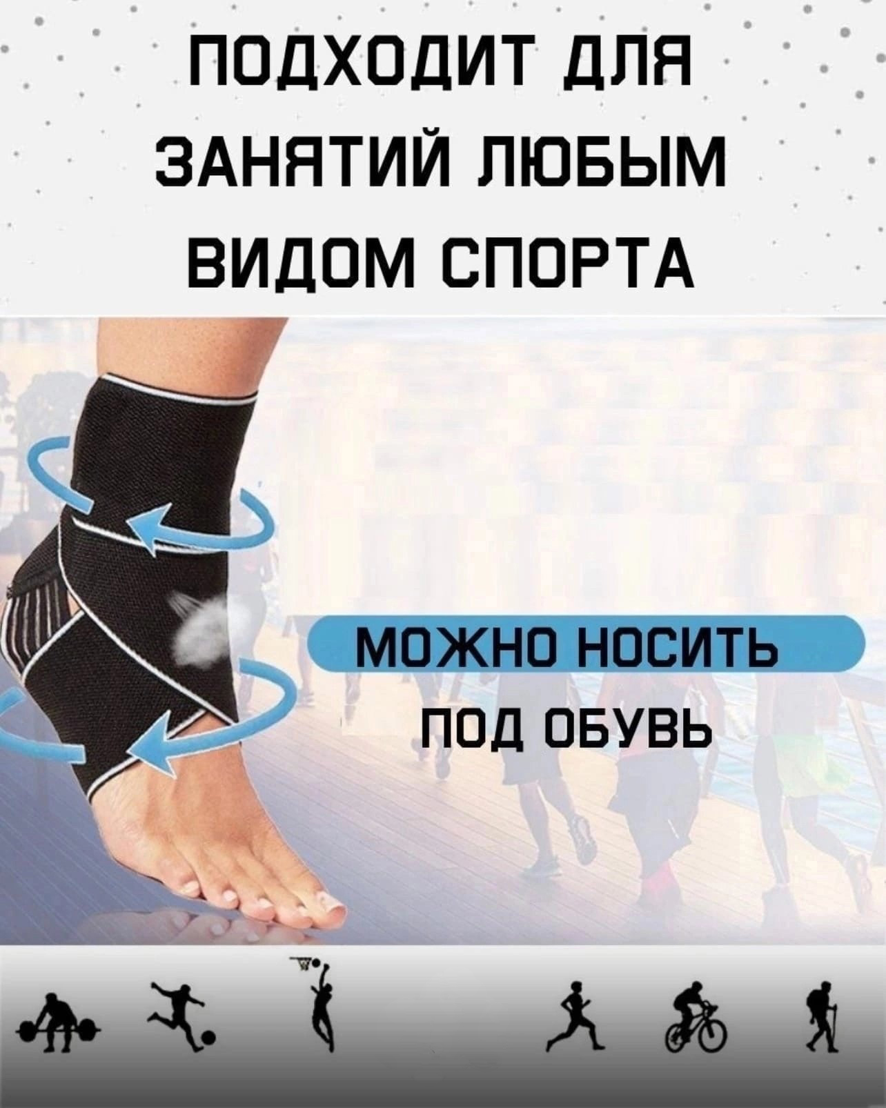 Повредила ногу на тренировке, наступать было очень больно. Эластичные бинты перетягивают сильно, а если легче затягивать, то смысла в них нет. Заказала этот бандаж. Отличный, хорошо держит ногу, при наступании на ногу уже нет такой простреливающей боли. Рекомендую 👌🏼